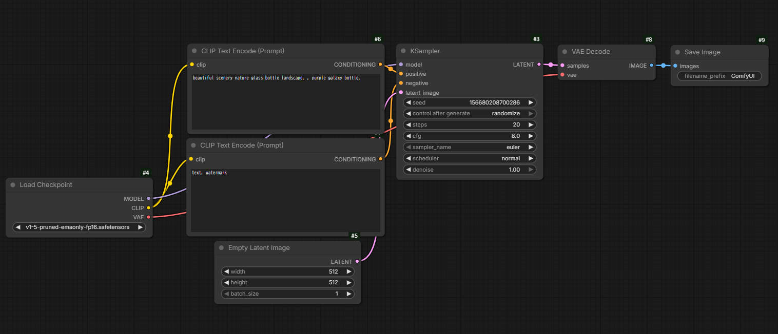 完成形は以下のようになるはずです。Empty Latent Imageは削除しておきます。