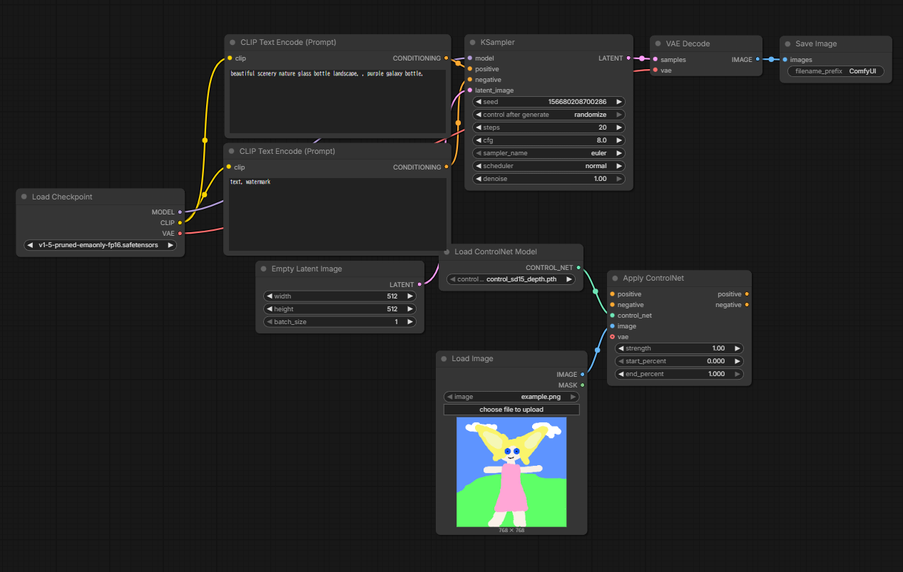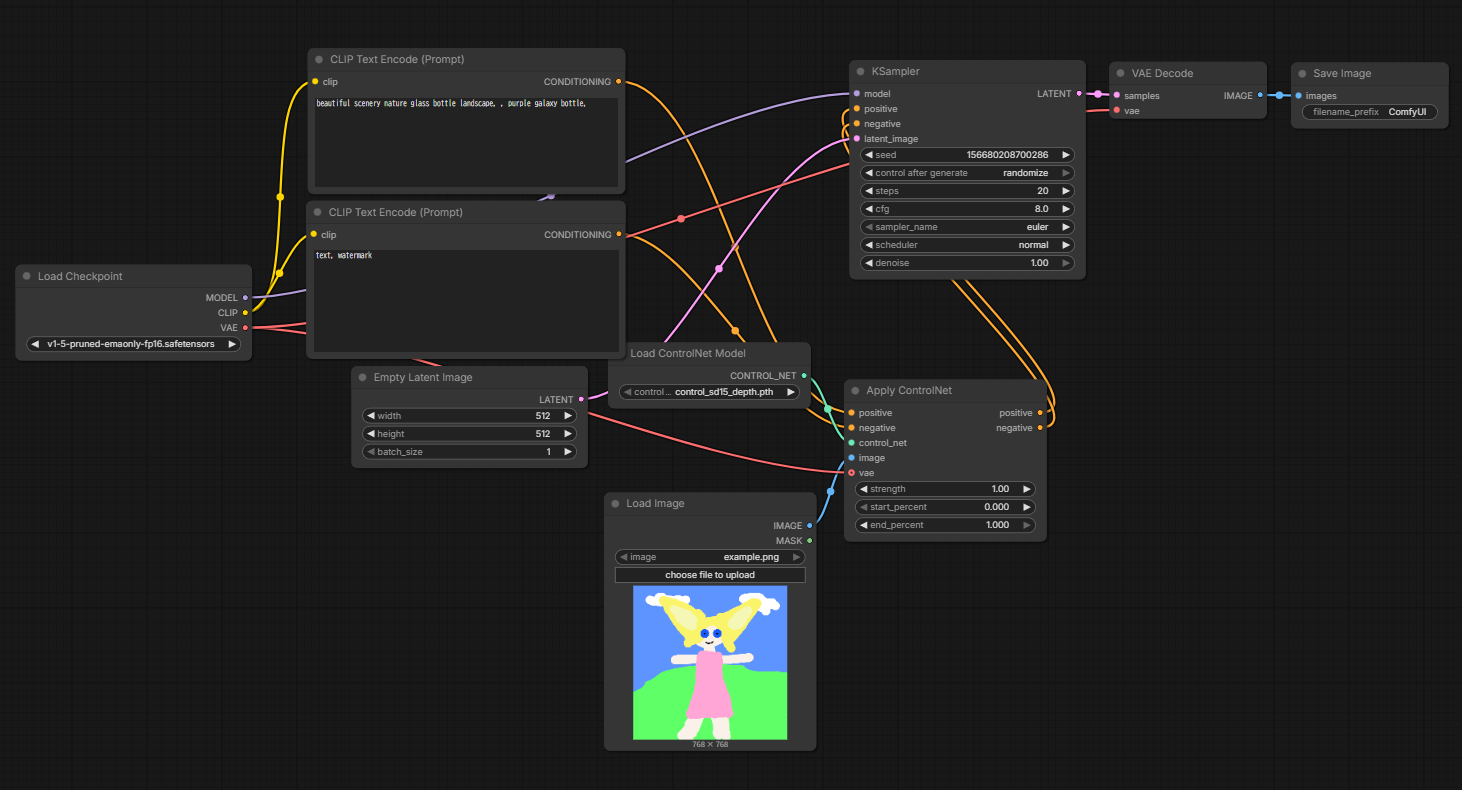 ControlNetを一つだけ使う簡単な例ですがひとまず使うことはできるかと思います。