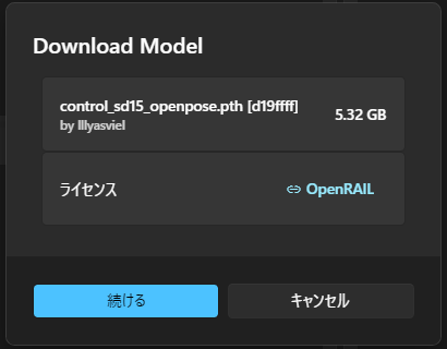 画像を選択して、モデルを選択するのですが未ダウンロードの場合はこのような画面になります。